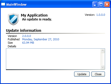 An update is ready (customizable image and text).